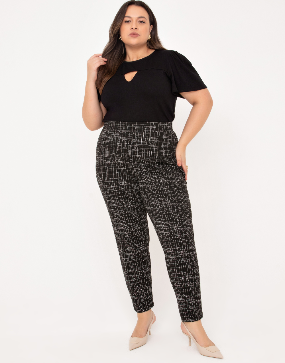 Composição: 47% ALGODÃO, 40% VISCOSE, 11% POLIÉSTER, 02% ELASTANO