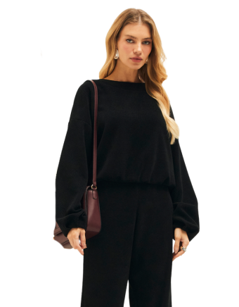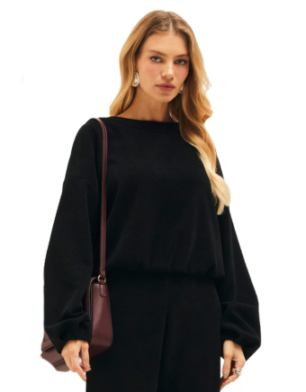 Blusa canelada decote parado no ar