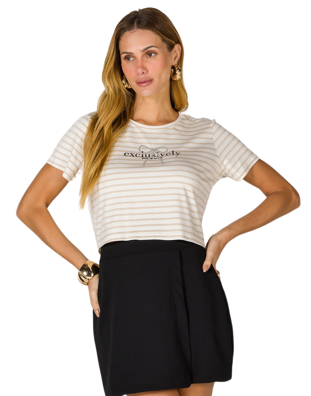 T- shirt listrada laço parado no ar
